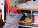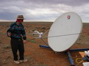 At these locations the cafe was installed and photos were taken. During each location visitors were asked to sign a visitor book and could use the Internet to send and receive their email and update their web-sites. Some visitors - also competitors in the World Solar Challenge - used the Internet connection to check the weather forecast and rain radar available on the Bureau of Meteorology website here in Australia. Our visitors enjoyed beer or plunger coffee - depending on the outside temperature - and came from all corners of the globe. We had visitors from several USA states, Puerto Rico, Germany and others. The Western Australian solar car team Sungroper used the Internet Cafe to update its website and as a result of the nightly updates the website became the defacto reference for the solar race - often having data and images up long before any official sites. There was no charge to use the Sungroper Internet Cafe, though donations in the form of superb Puerto Rican pasta and cool drinks were gladly accepted as thanks from the more grateful users of the facilities. The Sungroper Internet Cafe was built on a wooden trestle table around a 2m satellite dish powered by any available power-source, including generator, batteries and borrowed (with permission) camping site poles. Users generally provided their own computer, though the gateway workstation were made available for web mail as well as SMTP services for those users without. Our busiest night was in Dunmarra, our coldest in the middle of nowhere, and the most central in Australia at the Aileron Roadhouse. We also used our time to setup an outdoor cinema and outdoor observatory.